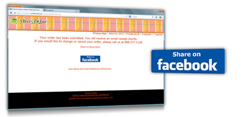 Thank you for submitting your order. Would you like to share it on Facebook?